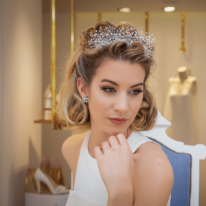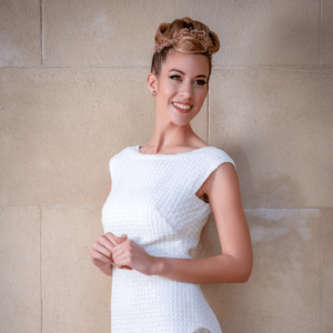 Pide cita presencial o por videollamada con la diseñadora Charo Villanueva para crear el tocado de tus sueños.